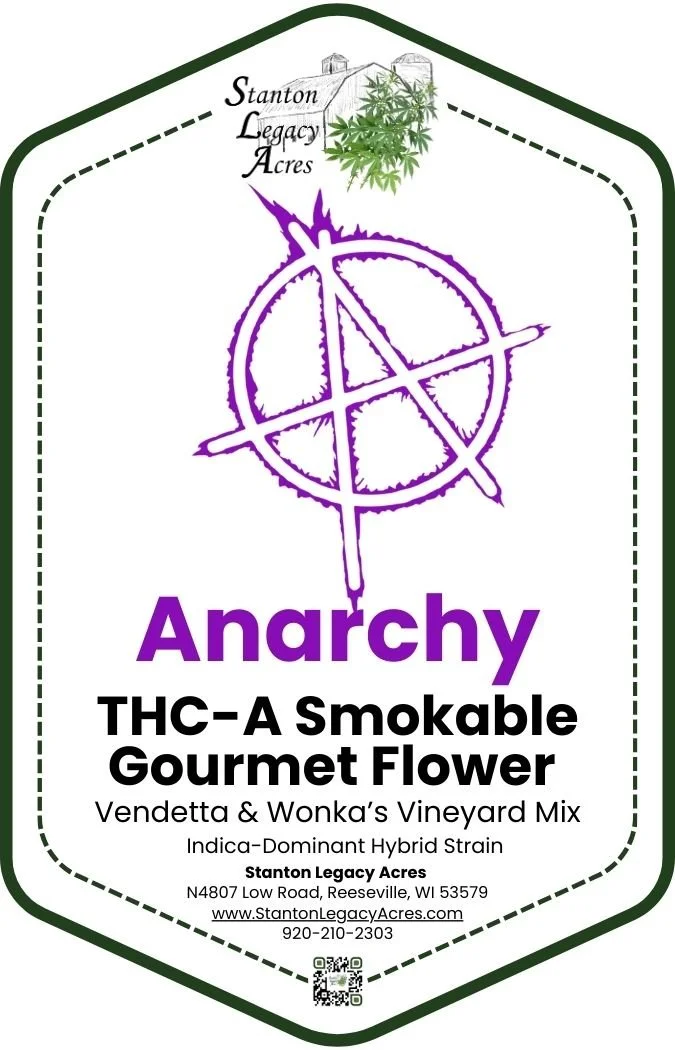 Break the rules of relaxation with Anarchy—a rebellious fusion of creative energy and deep, body-melting calm. This THC-A-rich, Indica-dominant hybrid brings together the cerebral spark of Vendetta and the rich, dessert-like tranquility of Wonka’s Vineyard, delivering a smooth, full-spectrum high that soothes tension while keeping the mind uplifted and creatively charged.